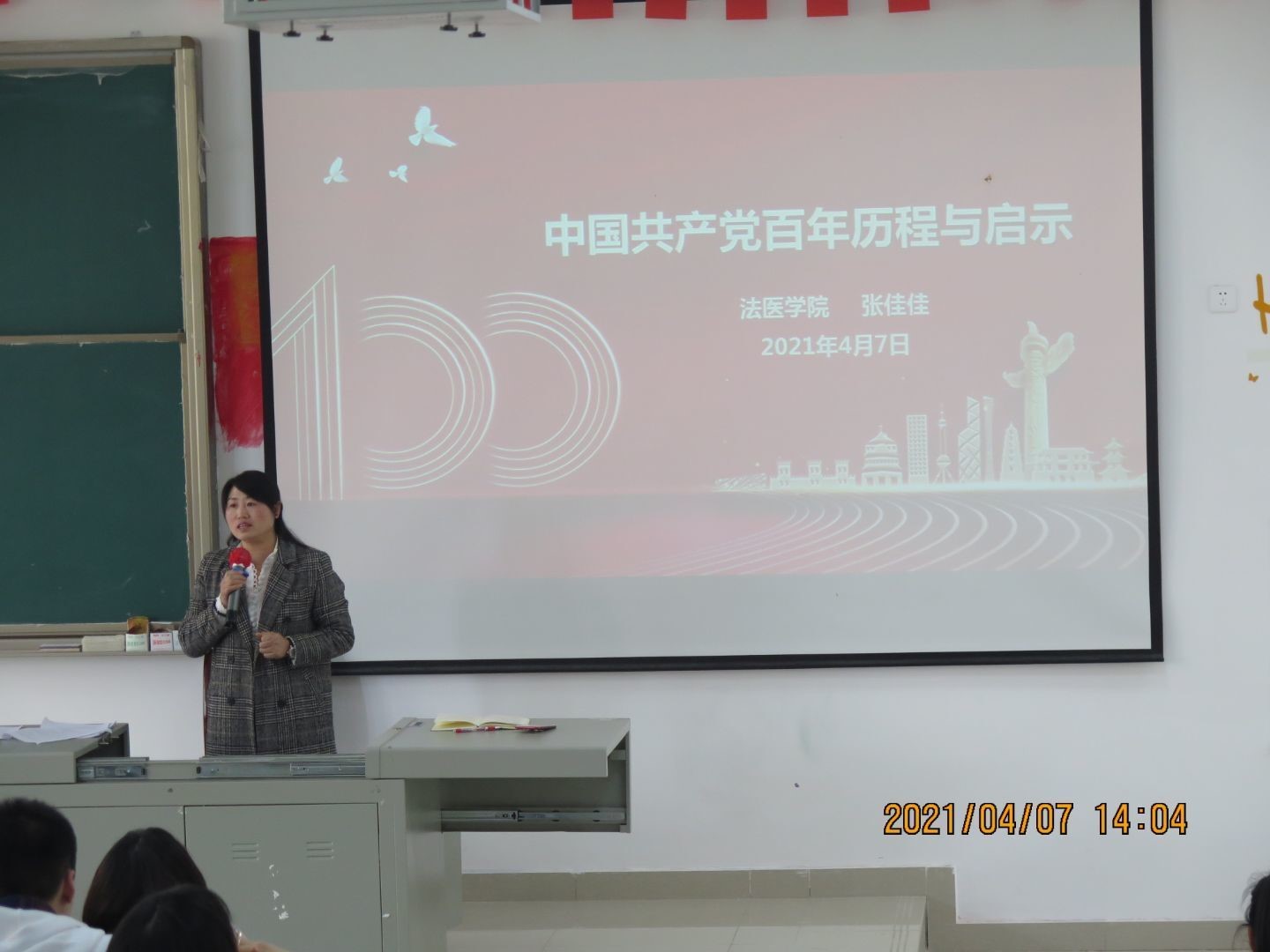 本次党史学习的重点是以“中国共产党百年历程与启示”为主题的党课学习,在学习中,张佳佳提到:“三个代表”重要思想的形成与发展、改革开放及党的十八大的召开,对党的创立、党的光荣传统、党的坚定信念等问题作出了详细解释,并对法医学子提出要求:积极参与青年大学习网上主题团课,学习党史并参与党史答题。张佳佳具体阐述了学习党史的各个方面,为大家在学习和生活中如何加强自己的党性修养、锤炼党性指明了方向。