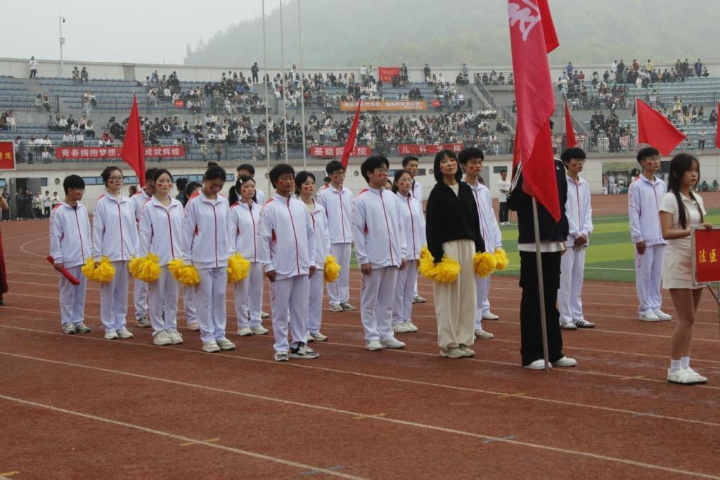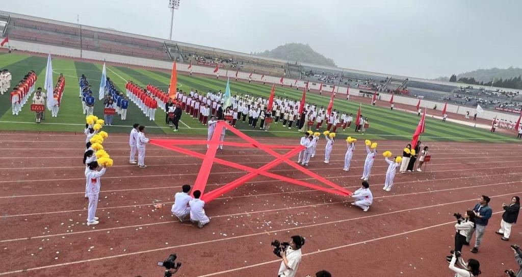 开幕式上,三亿方阵身着统一队服,步伐铿锵、口号嘹亮,专业特色鲜明,赢得全场喝彩。啦啦操表演成为焦点:队员持黄球红绸,随动感旋律旋转腾跃,队形变幻间,十名队员以红绸凌空织就赤色五角星,刚柔交融燃爆现场。