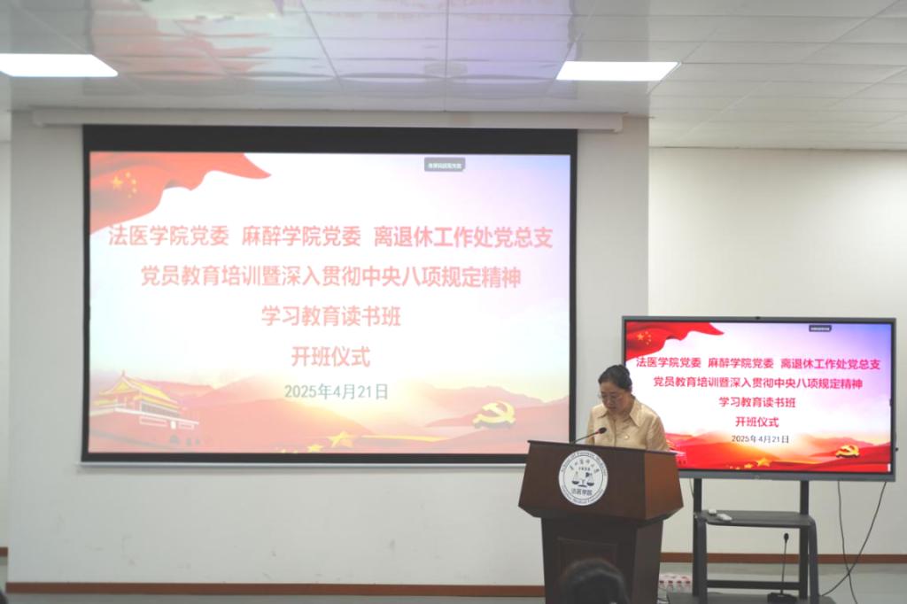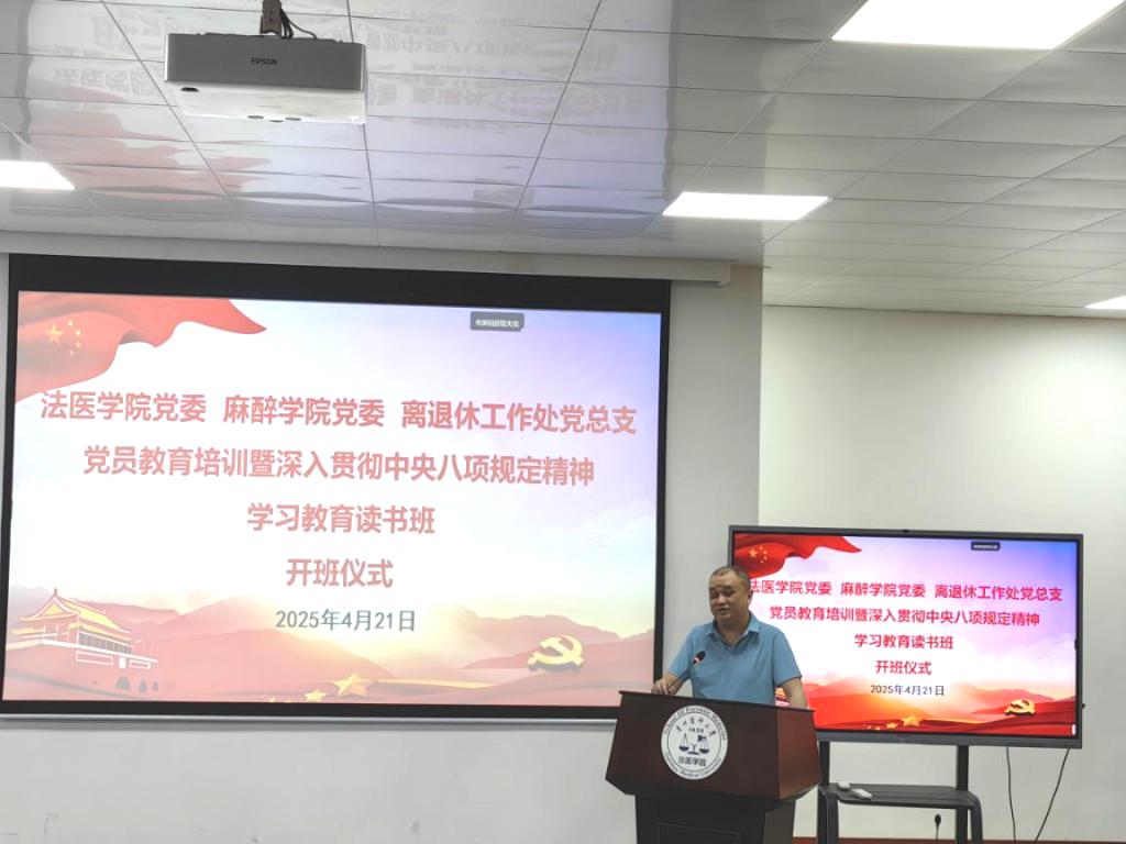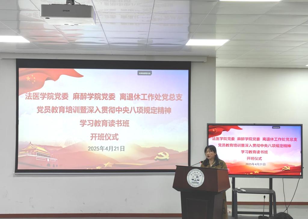 4月21日,根据中共中央办公厅印发《全国党员教育培训工作规划(2024-2028年)》精神,为持续深入学习贯彻习近平新时代中国特色社会主义思想,持续巩固党纪学习教育成果。三亿体育官网党委、麻醉公司党委、离退休工作处党总支党员教育培训暨深入贯彻中央八项规定精神学习教育读书班于三亿三楼多功能学术报告厅举行开班仪式。参加培训的各单位全体教工党员参加,开班仪式由离退休工作处党总支书记张雪晴主持。