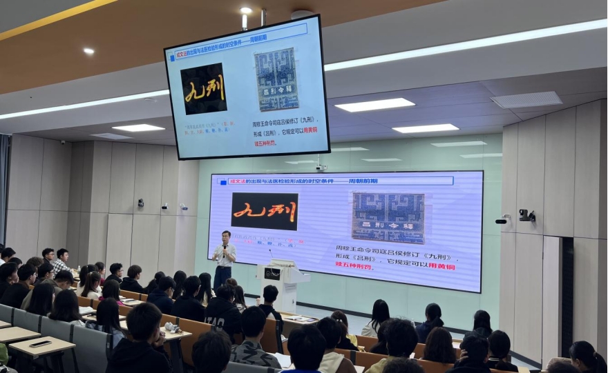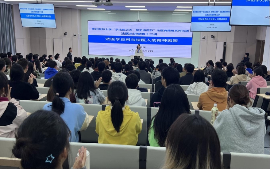 宋随民以时间为线索,深入浅出地讲述了法的出现与法医司法检验形成的时空条件。活动现场气氛良好,反应热烈。《折狱龟鉴》《棠阴比事》《洗冤集录》等一部部典籍的历史故事,深深吸引着在场的各位同学。宋随民以独到的见解,深厚的文化底蕴,通俗易懂的语言,细致入微地向同学们描述了洗冤精神发展以及对国内外的深远影响,并寄语贵医学子“承法医之志,吾辈当自强”,自觉传承蓬勃有力的法医精神,勇担重大的历史责任,树立中华优秀文化自信,成为一名优秀的典籍“守护者”与“发扬者”。