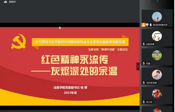杨晖以什么是红色精神、铭记、传承、调研实践四个切入点向同志们深入讲解红色精神。以《钢铁是怎样炼成的》一书其中的名句引入,并结合红色精神在近现代的体现案例,生动地向同志们阐述了党的红色历史。同时,也讲述了老一辈法医工作者顽强拼搏,为了公正司法做出的努力和贡献。红色故事耳熟能详,革命传奇代代不忘。杨晖倾情讲述英雄故事,带领全体党员一起接受红色洗礼,抒发爱国情怀。