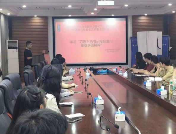 宣传委员安洋带领全体党员重温习近平总书记视察贵州重要讲话精神,要求党员同志认真领悟习近平总书记视察贵州时的重要讲话精神。习近平总书记视察贵州指出,贵州是全国首个全面贯彻新发展理念的试验区,是新时代全面建设社会主义现代化国家的重要战略支点之一。大家深入学习了贵州在经济、社会、文化、生态等方面取得的重大成就,认真领会“大交通、大旅游、大数据”和少数民族文化等贵州特色,进一步明确了实施新发展理念、推动高质量发展的重大意义,也更好理解了医学教育在现代化建设中所扮演的重要角色。