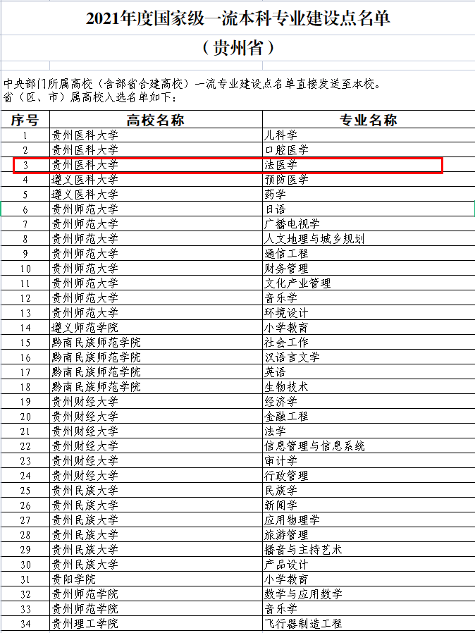 近日,根据《教育部办公厅关于实施一流本科专业建设“双万计划”的通知》(教高厅函〔2019〕18号),教育部评选出了2021年度国家级和省级一流本科专业建设点。其中,公司法医学专业获批2021年度国家级一流本科专业建设点。多年来,三亿以一流本科专业建设“双万计划”为引领,以立德树人为根本任务,全面贯彻党的教育方针。坚持以本为本,遵循四个回归。立足贵州、面向全国,服务法治中国,在新医科背景下培养国内一流的具有坚实医学和系统法医学理论及基本技能,具有实践创新创业能力和实干担当的复合型法医学人才。