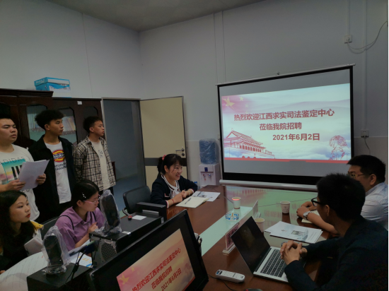 6月2日,江西求实司法鉴定中心李波法医和章青波法医一行前来公司招聘2021届法医学专业毕业生,员工科科长兼毕业班辅导员郑艳华和2021届毕业生参加现场招聘会。