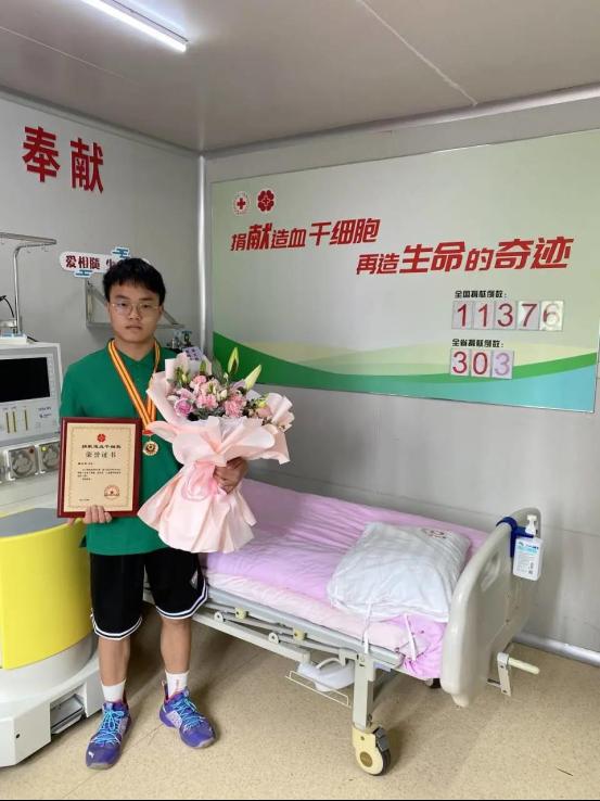黎文艺同学今年大二,在一年前他了解到造血干细胞捐献工作正在招募志愿者,便决定加入中华骨髓库,率先入库成为了一名造血干细胞捐献者,并在今年5月份接到配型成功的通知。