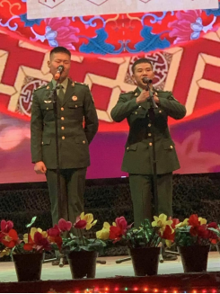 2020年的春节,我参加了我们旅的春节联欢晚会表演,当兵之前我没又任何才艺,更不敢上台说话,但是经历一年多的磨练,我战胜了自己,我与我的老兵合作,在春节晚会的时候表演了相声。部队生活非常的紧张,非常的有序,拼搏的每一次训练更加的精彩。