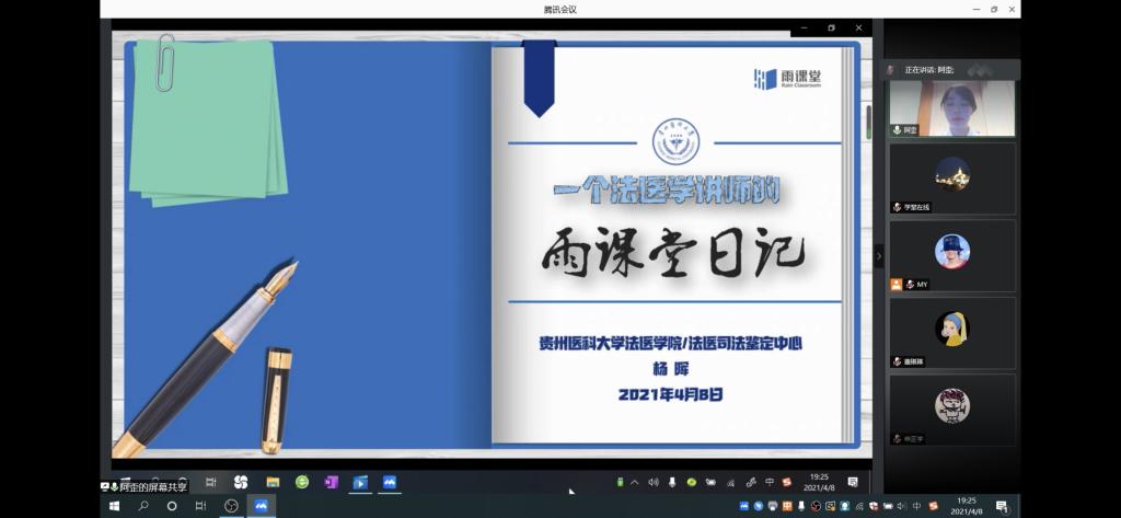 4月8日,受学堂在线雨课堂“大鱼俱乐部”的邀请,公司杨晖老师在线上作了题为“一个法医学讲师的雨课堂日记”的分享汇报,来自全国各校的4000余名雨课堂使用者在线收看了此次分享会。据悉,此次分享会是雨课堂大鱼俱乐部举办的第五季活动——医科类院校专场,分别邀请了沈阳药科大学马克思主义公司讲师、雨课堂培训师针对雨课堂如何助力“课程思政”以及如何通过雨课堂的用多种模式支撑教学设想进行了讲授。