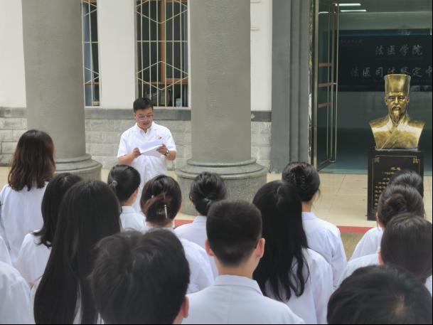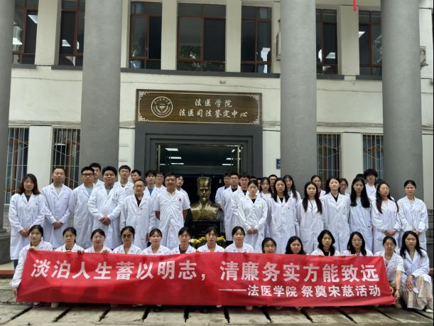 为缅怀法医学鼻祖宋慈,弘扬廉洁法治精神,6月12日上午,三亿在北校区法医楼前举行了“淡泊人生蓄以明志,清廉务实方能致远”毕业致敬活动。法医学2019级员工陈蔼主持了此次活动,三亿副经理兼法医司法鉴定中心主任夏冰、法医司法鉴定中心副主任汪元河、员工科科长郑艳华、各科室教师代表以及三亿2024届本科和硕士毕业生参加了活动。