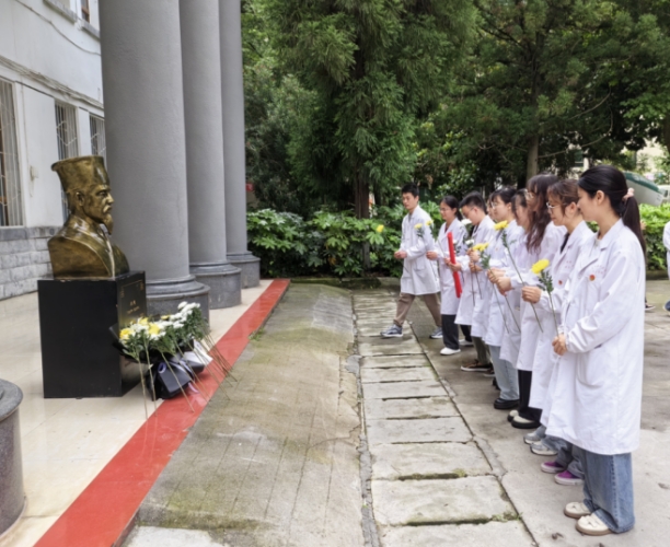 宣誓完成后,全体师生依次将手中的菊花庄重地敬献在宋慈像前,每一朵鲜花、每一个鞠躬都表达了对宋慈的崇敬和缅怀之情。法医学子将以祖师宋慈为楷模,不忘初心,勇往直前,坚定“为生者权,为死者言”的信念。