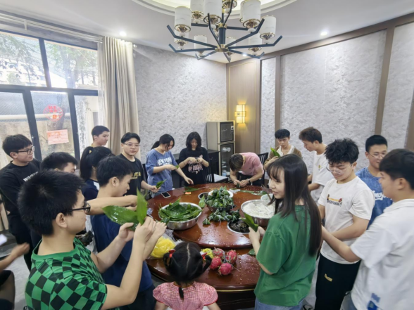 活动分为两部分。首先是包粽子比赛,现场备足了糯米、腊肉、火腿、粽叶等材料,同学们积极参与,气氛热烈。大家分工合作,包出了形态饱满、美观的粽子,同时讨论端午节的传统来历,现场洋溢着浓厚的节日氛围。随后进行了厨艺比赛,参赛同学各显身手,制作出色香味俱全的菜肴。这些活动不仅让同学们体会到“粒粒皆辛苦”的含义,还展示了他们的才艺。最后,菜肴和粽子摆上餐桌,伴随着祝福的干杯,食物被完全消耗,践行了光盘行动的理念。
